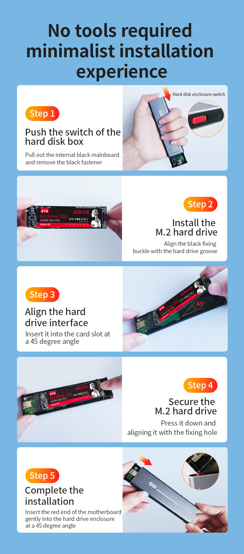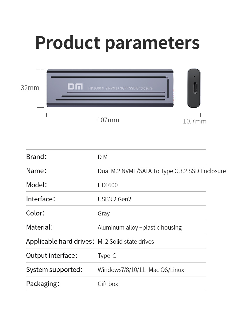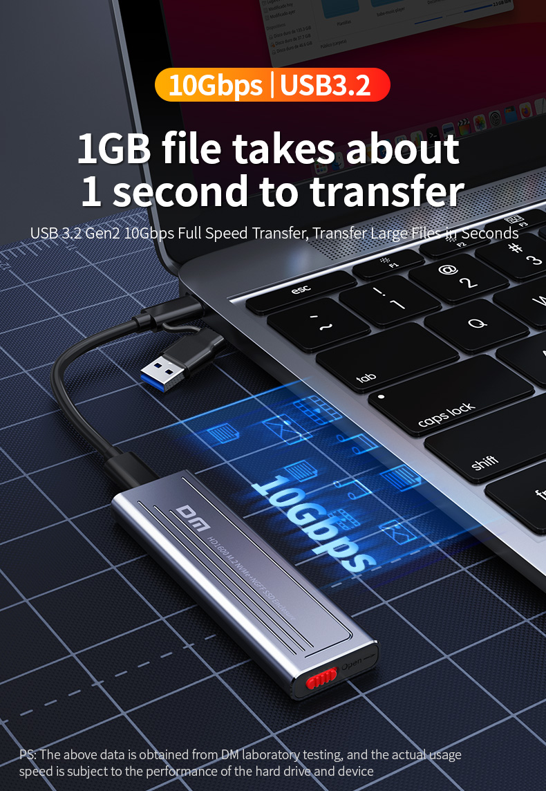 DM M.2 NVME/NGFF Dual Protocol SSD Type-C Converter Adapter Enclosure Case Solid State Hard Disk Box HD1600 | 消费电子产品 | 计算机与外设