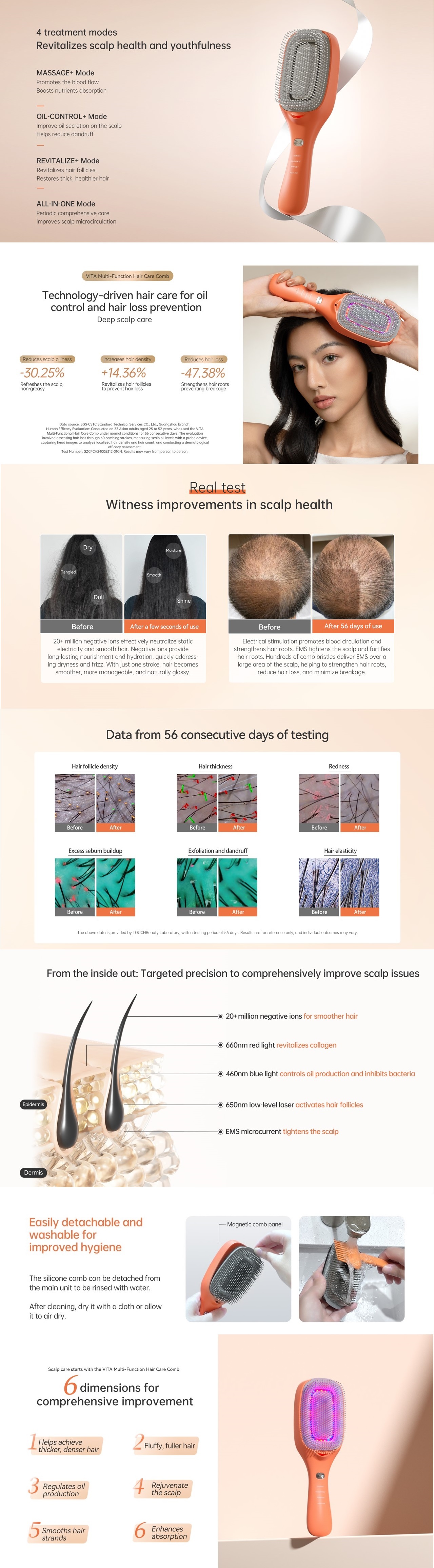 • 460nm Blue Light Therapy: Boosts scalp self-cleaning ability