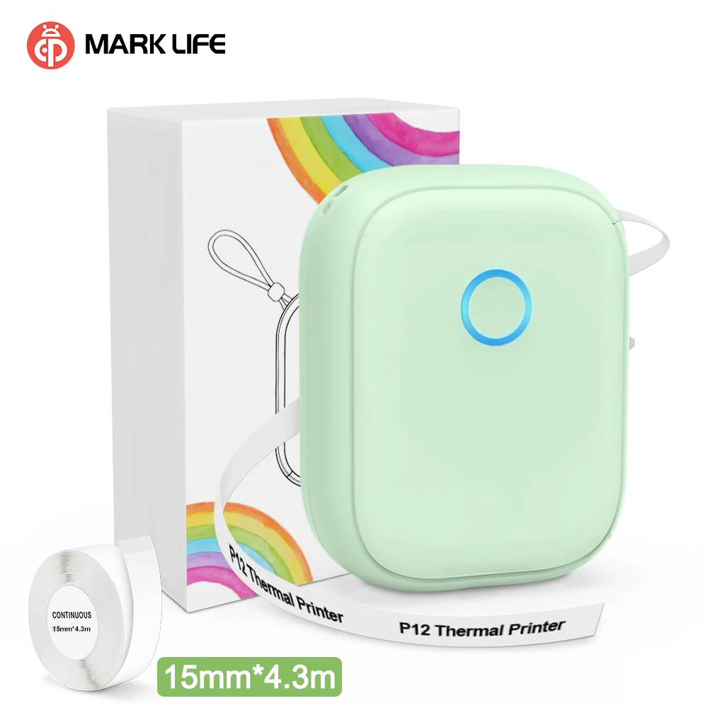 Marklife P12 Green Mini Thermal Printer Price Tag Label Maker Barcode Label Printer