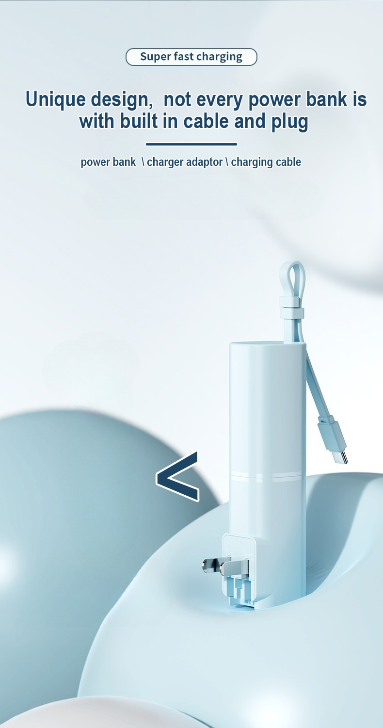 Mini Pocket Portable 2 in 1 Wall Plug Charger Powerbank PD 20W Fast Charge Power Bank 5000mAh With Cable