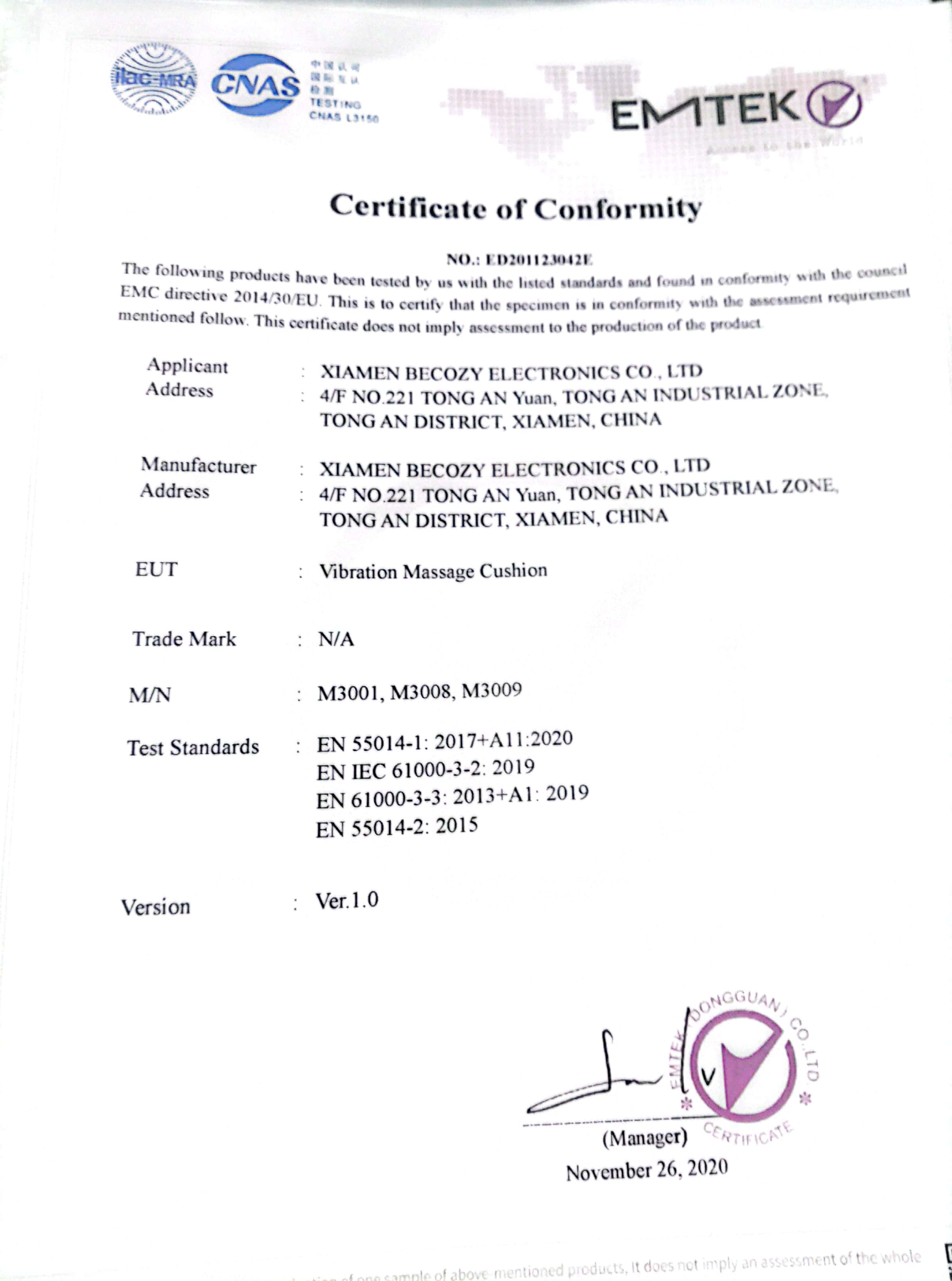 EMC certificate