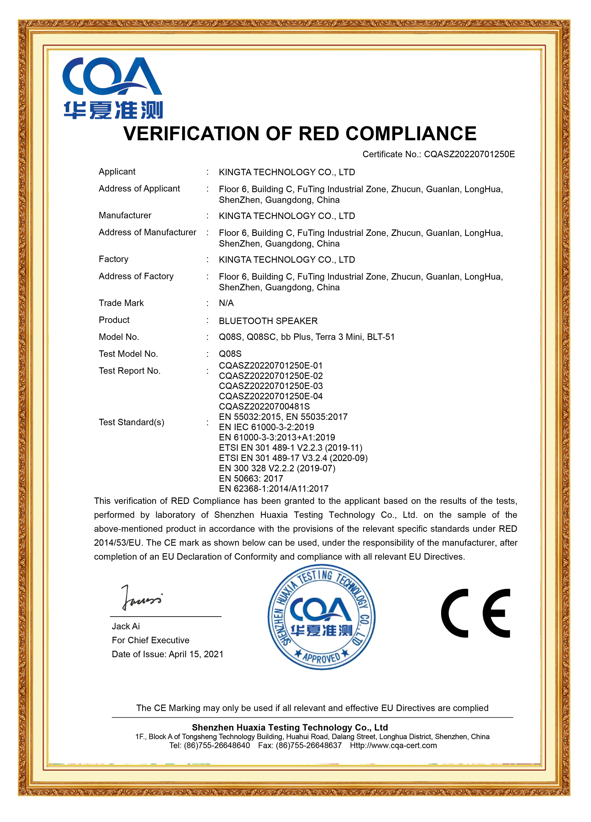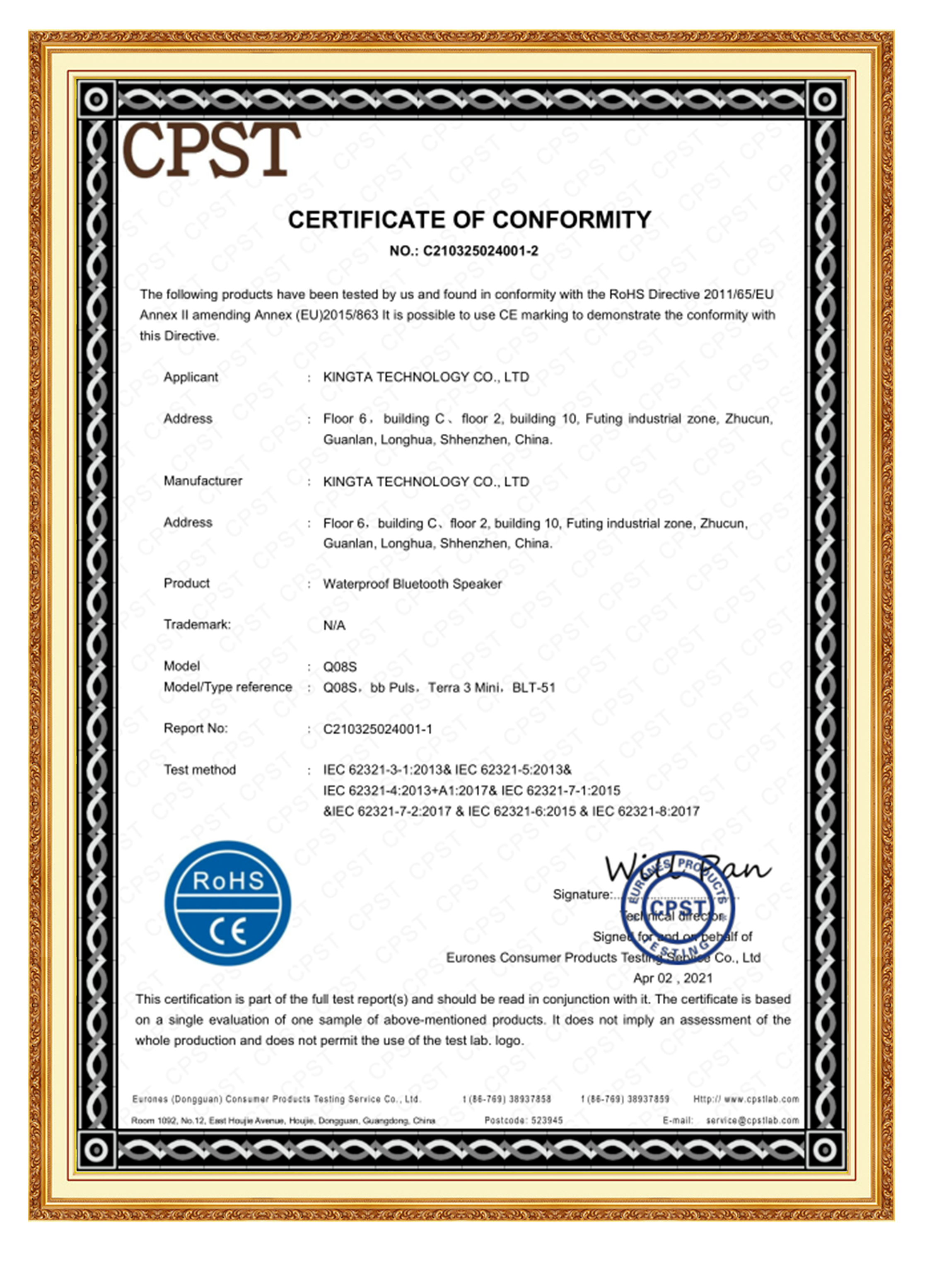 CE, ROHS, FCC, MSDS