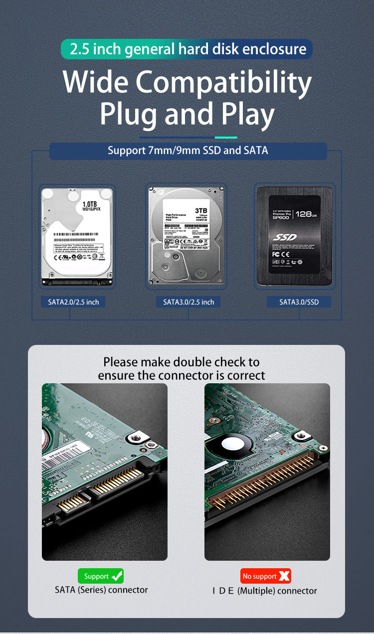 2.5" SATA 3.0 HDD or SSD (thickness of 9.5mm or less than it)