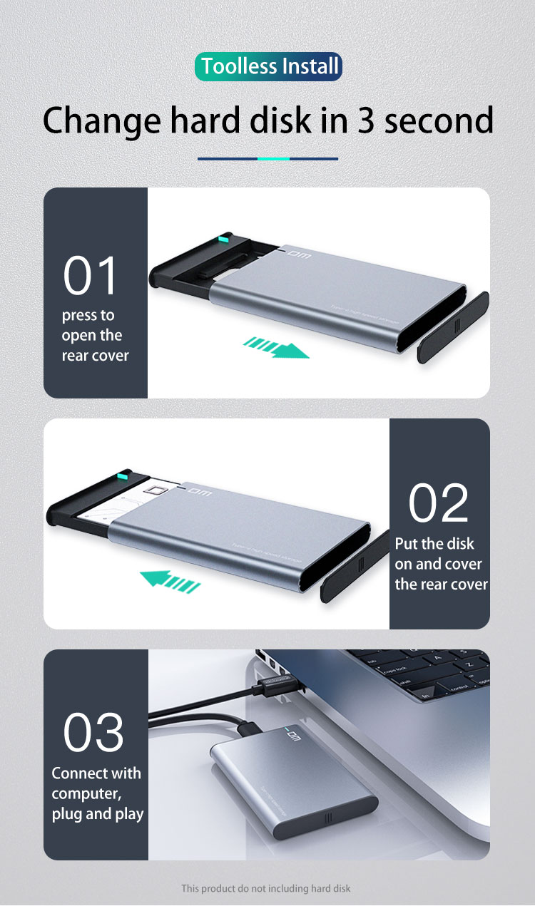 Portable DM SATA 3.0 6Gbps HDD Enclosure Supports Hard Drives up to 4 TB Capacity Model HD002