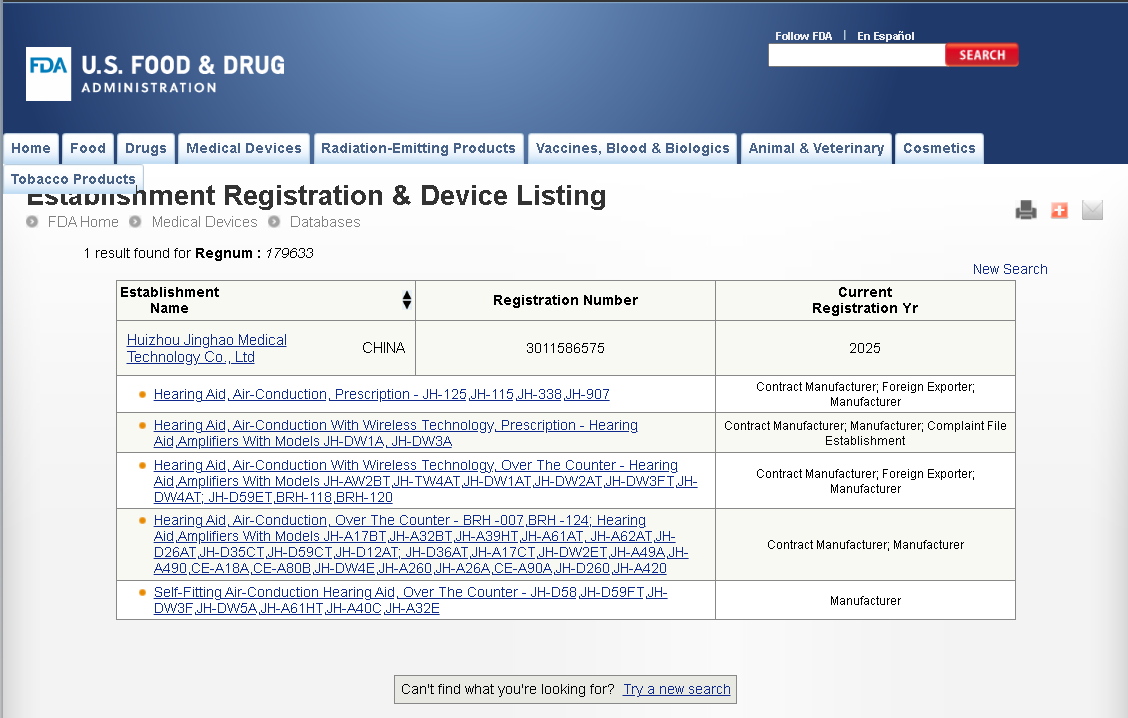 ⚠️ This document contains screenshots from the FDA database and is not an official certificate.