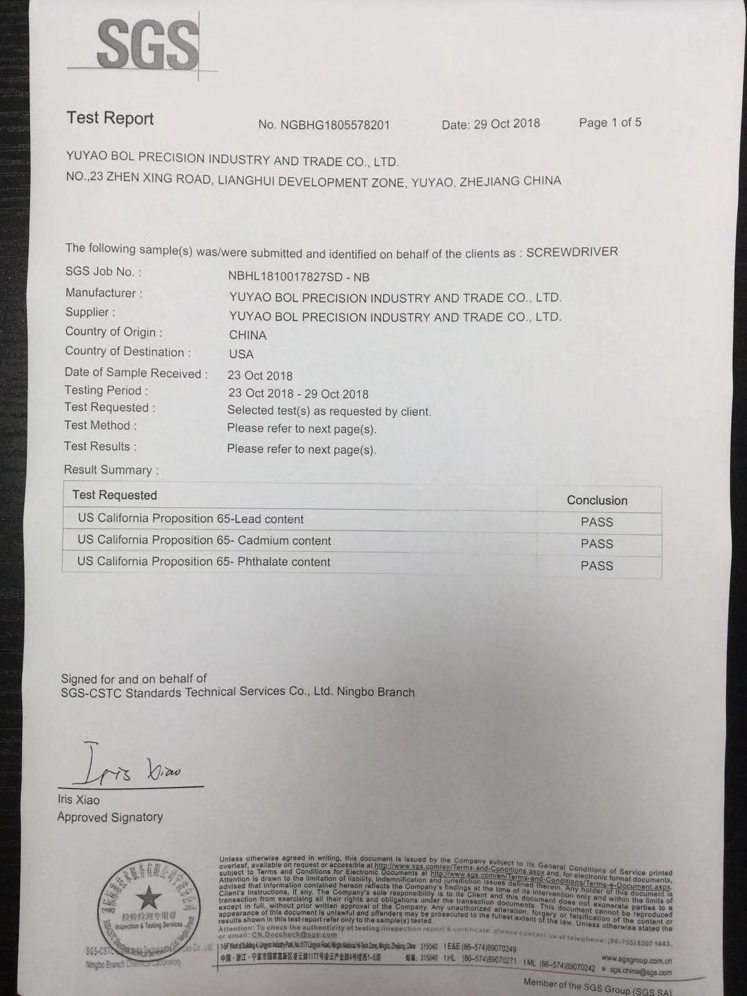 Yuyao Bol Precision Industry and Trade Co., Ltd.
