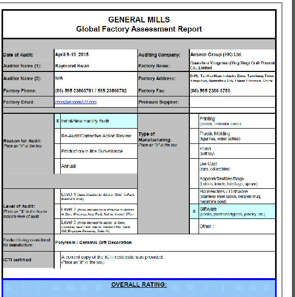 General mills-Global Factory Assessment Report 2015