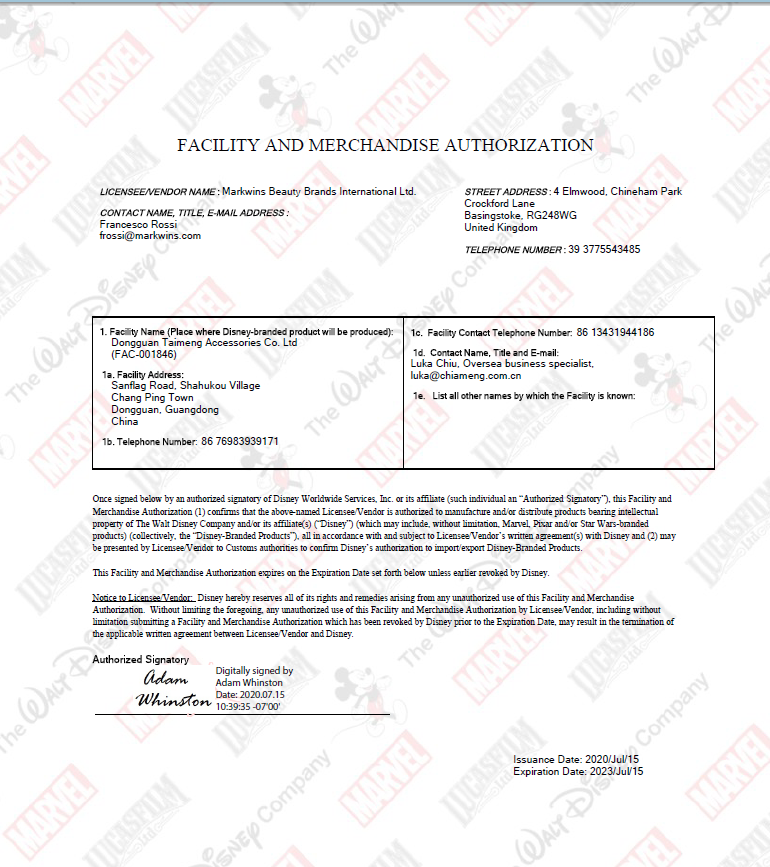 FACILITY AND MERCHANDISE AUTHORIZATION