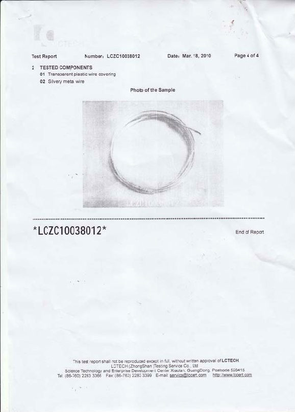 CE certificate for silver metal wire/plstic wire covering