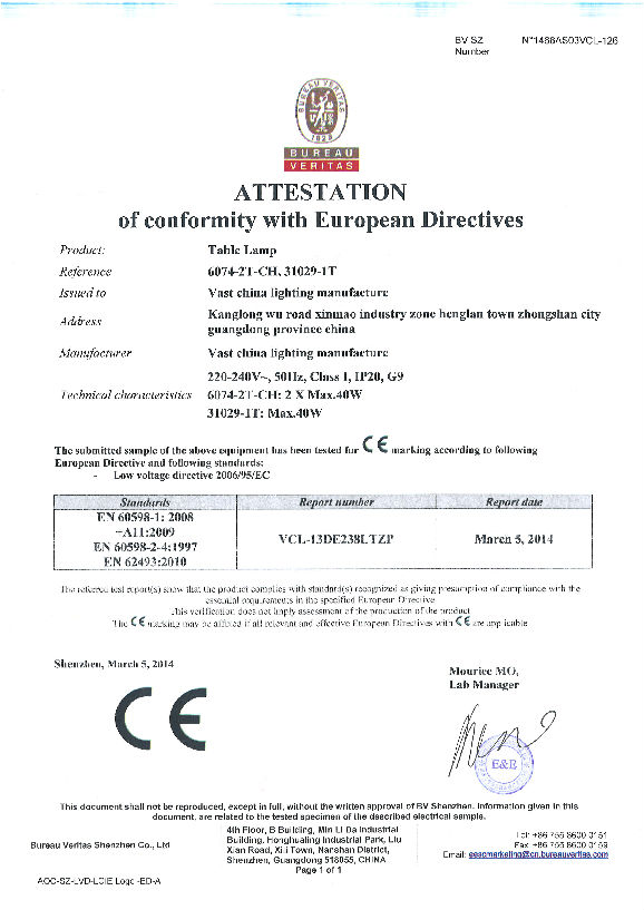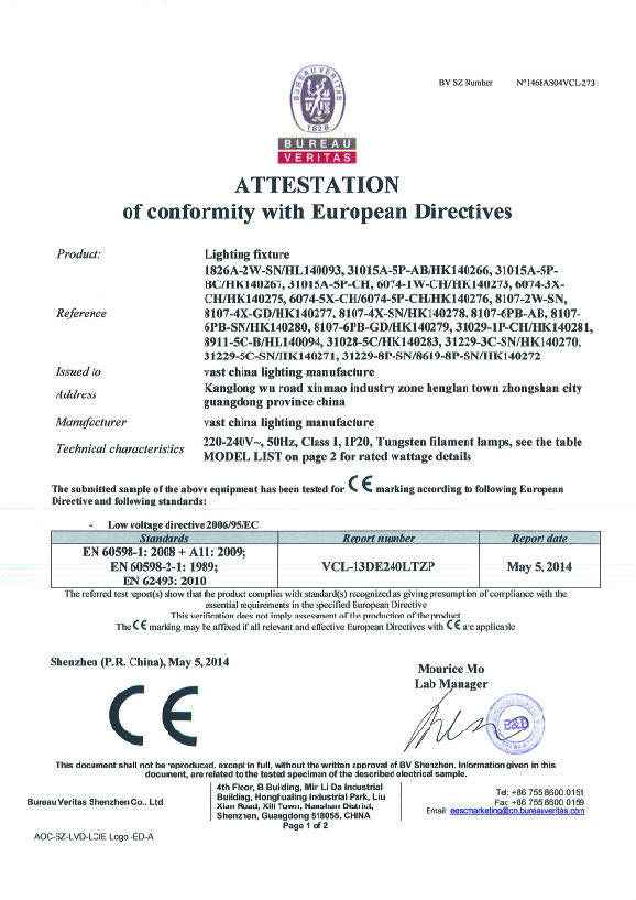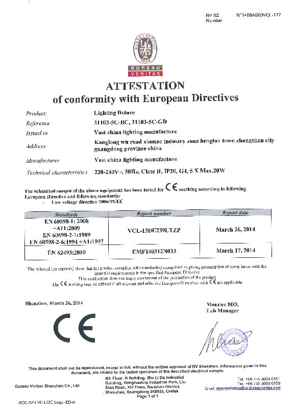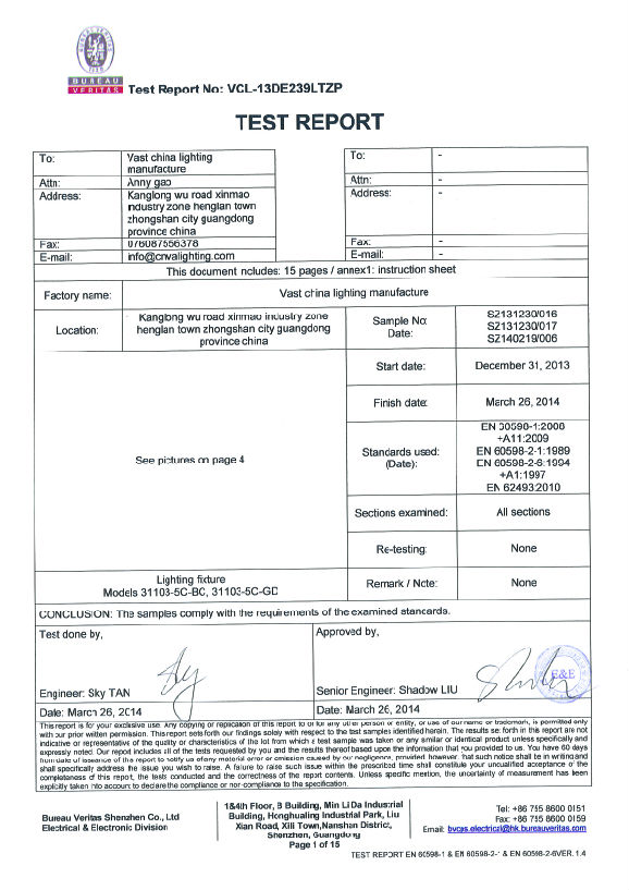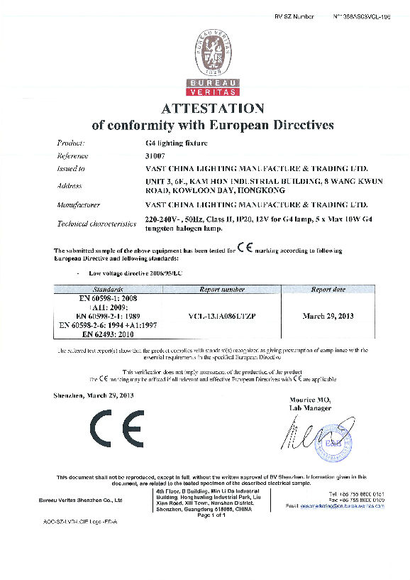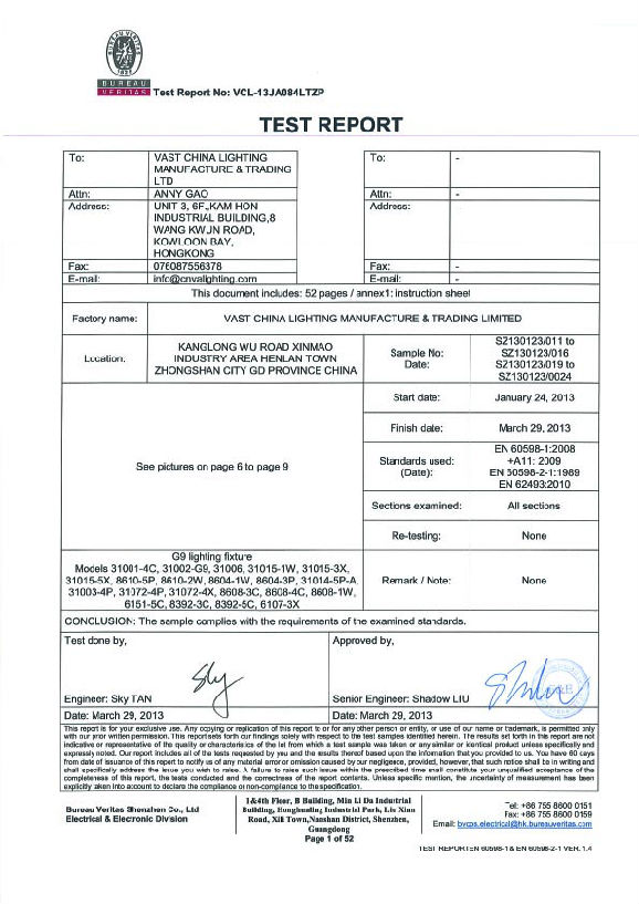 CE test report for G9 lighting fixture