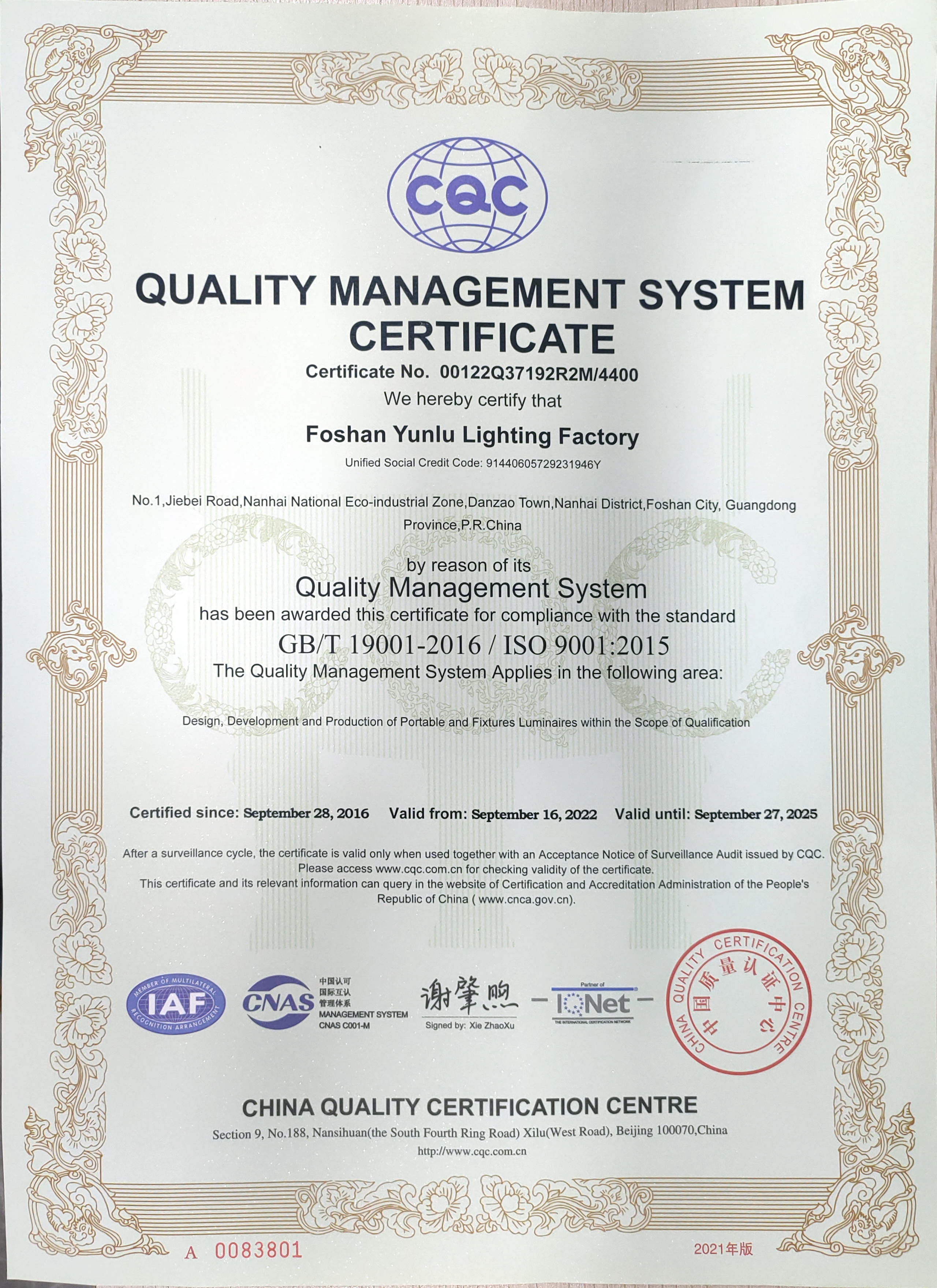 QUALITY MANAGEMENT SYSTEM CERTIFICATE
