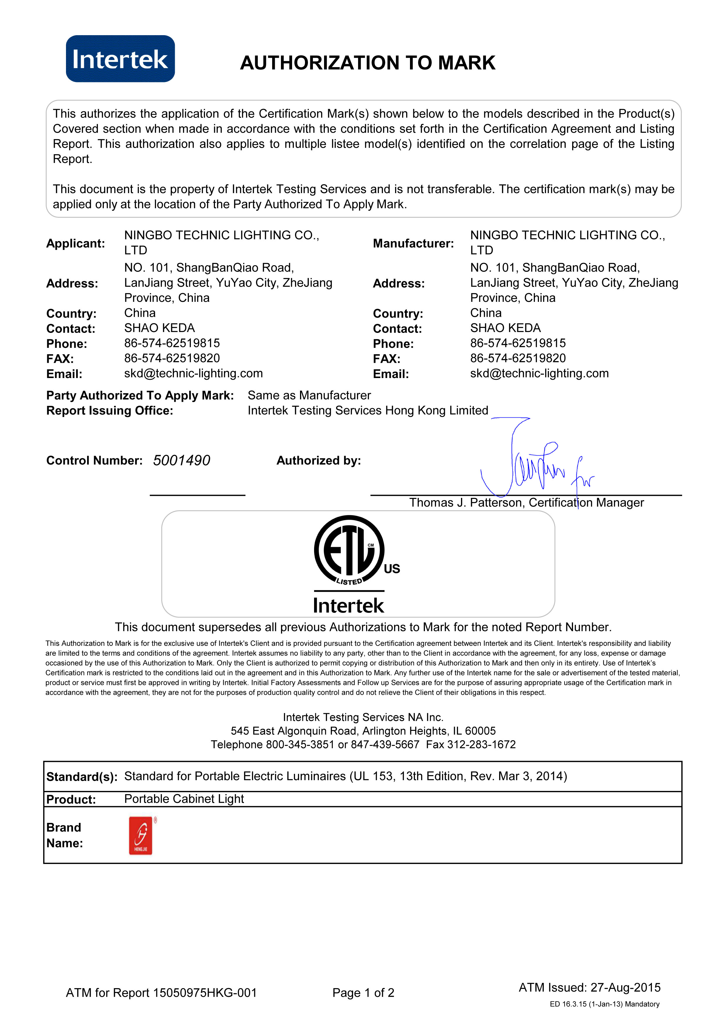 Ningbo Technic Lighting Co., Ltd.