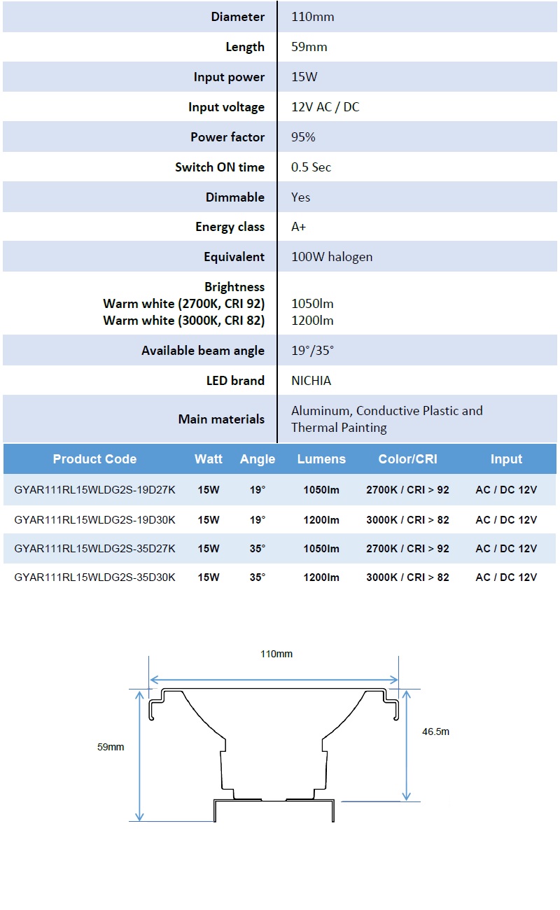 The new Reality AR111-G2S is an 15W LED lighting based on our AR111-G2 but much more powerful than the original 12W.