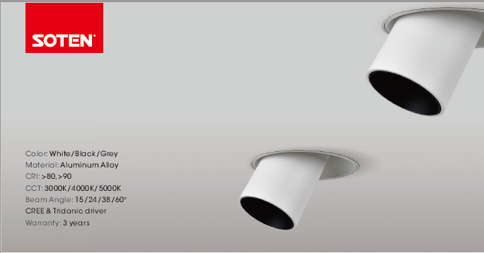 DIY Recessed downlights, customization length, power and application. Full size family on option to suitable for different using application. Full series beam angle from 15°, 24° , 36°in circle spot