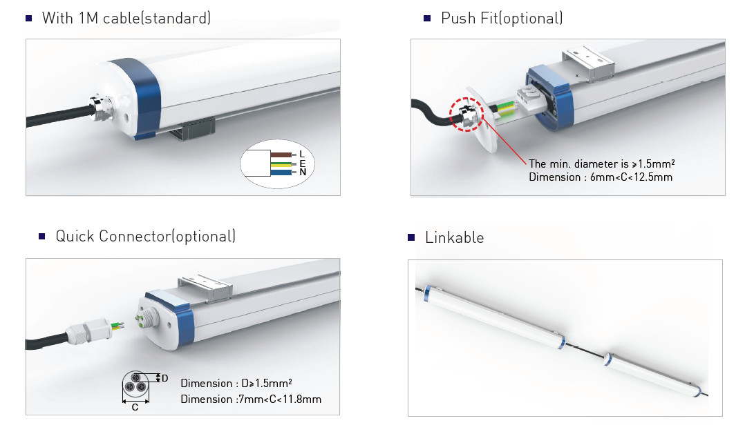 LM-79 and LM-80 and has an efficiency of up to 150lm/w. The semi-transparent prism diffuser ensures a comfortable light presentation. In addition, the fixture is easy to install with through-wiring 3x1.5mm 2 and push fit connectors. When replacing your TL-fixtures with Ervan LED fixture, you will realize enormous savings in energy and maintenance costs, whereby a short payback period is guaranteed.