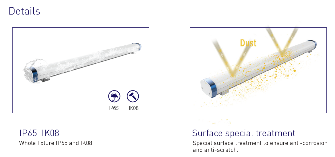 Ervan weather proof LED fixture is a replacement for traditional fluorescent fixtures that generates up to 70% in energy savings. The IP65 and IK08