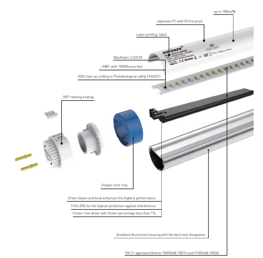 Premium LED T8 tube is unique design, great quality with ultra high efficiency and lighting uniformity SDCM3, flicker free customized LED internal driver which could meet the latest international safety directive, reliable option for youur projects.