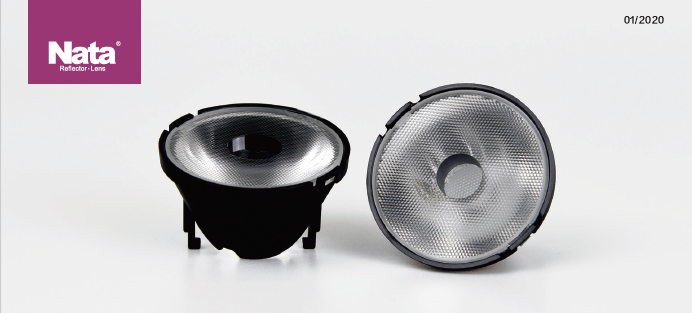 Lens with black outer cover and easy assembling holder. Clean Light shape, material PC