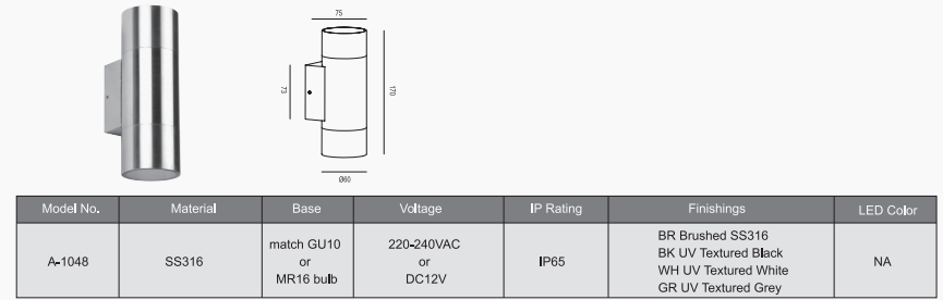 GU10 MR16 IP65 SS316 up and down Outdoor wall spot light