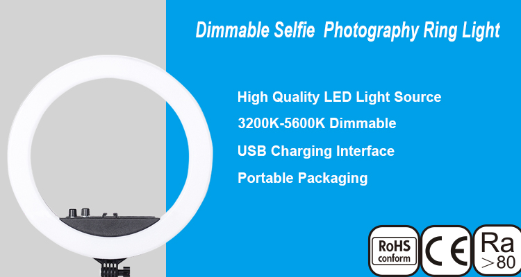 LED Ring Light Camera Lighting Home Small Tik Tok Standing Ring Light Led 18 inch with USB Power Patch Piece Film