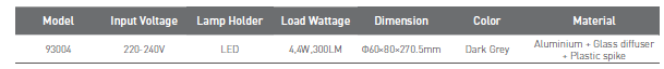 Aluminium,Glass diffuser+plastic spike