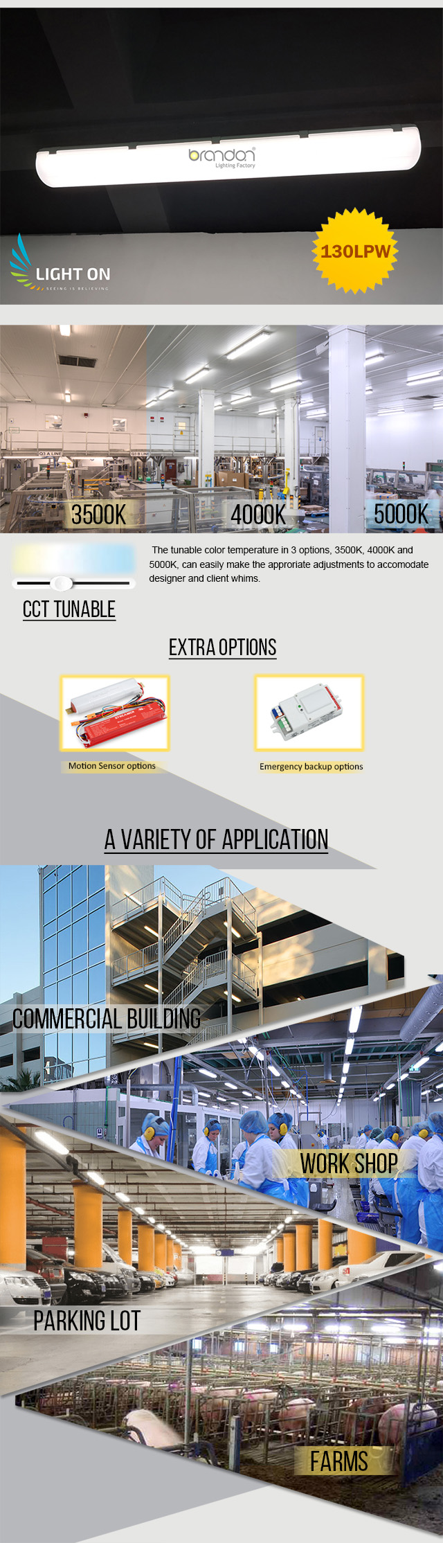 The Linear fixture Vapor Tight can be effectively used in low mounted indoor and outdoor locations. Recommended for commercial or industrial settings such as parking garages, car washes, cold storage, garden centers and more.