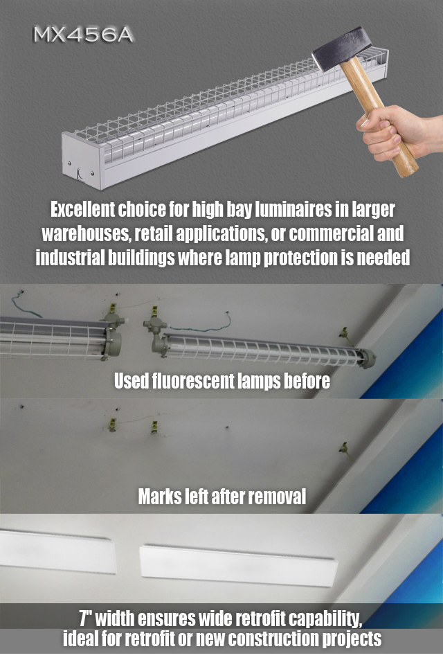 The MX456 Series corridor wraparound features economy and energy efficient performance. This luminaires utilizes a low brightness, extruded PC lens for dependable performance and good looks. This cost effective LED utility wrap fixture is a commercial ceiling fixture that provides high uniformity, excellent efficiency and reduced glare. Use in a wide variety of applications such as open offices, private offices, conference rooms, reception areas, retail, hallways, industrial assembly, retail open areas and educational facilities. It is also an ideal complimentary wraparound luminaire for diverse applications requiring economical general lighting.