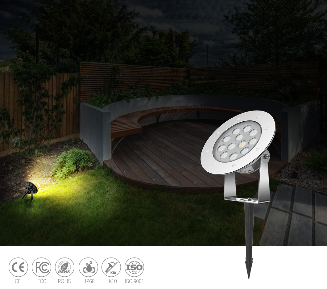 Outdoor Use 24V IP68 9W Surface Polishing High Lumen DMX RGB LED Garden Pin Lights