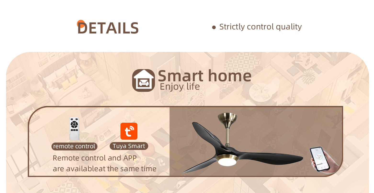 Smart Control Included Remote control & Wall control , Phone app tuya wifi control