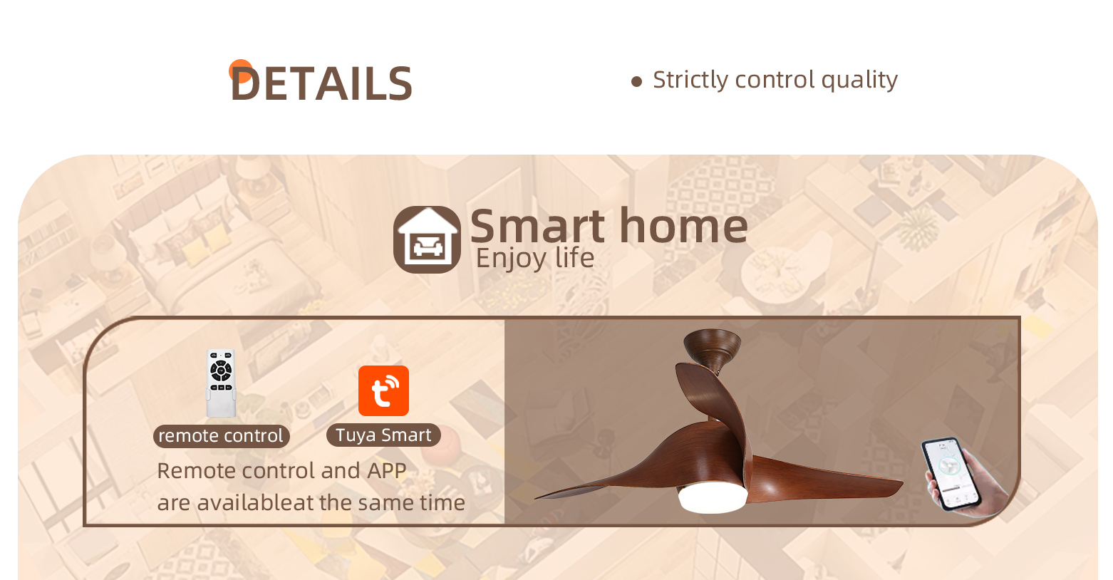 Smart Control Included Remote control & Wall control , Phone app tuya wifi control