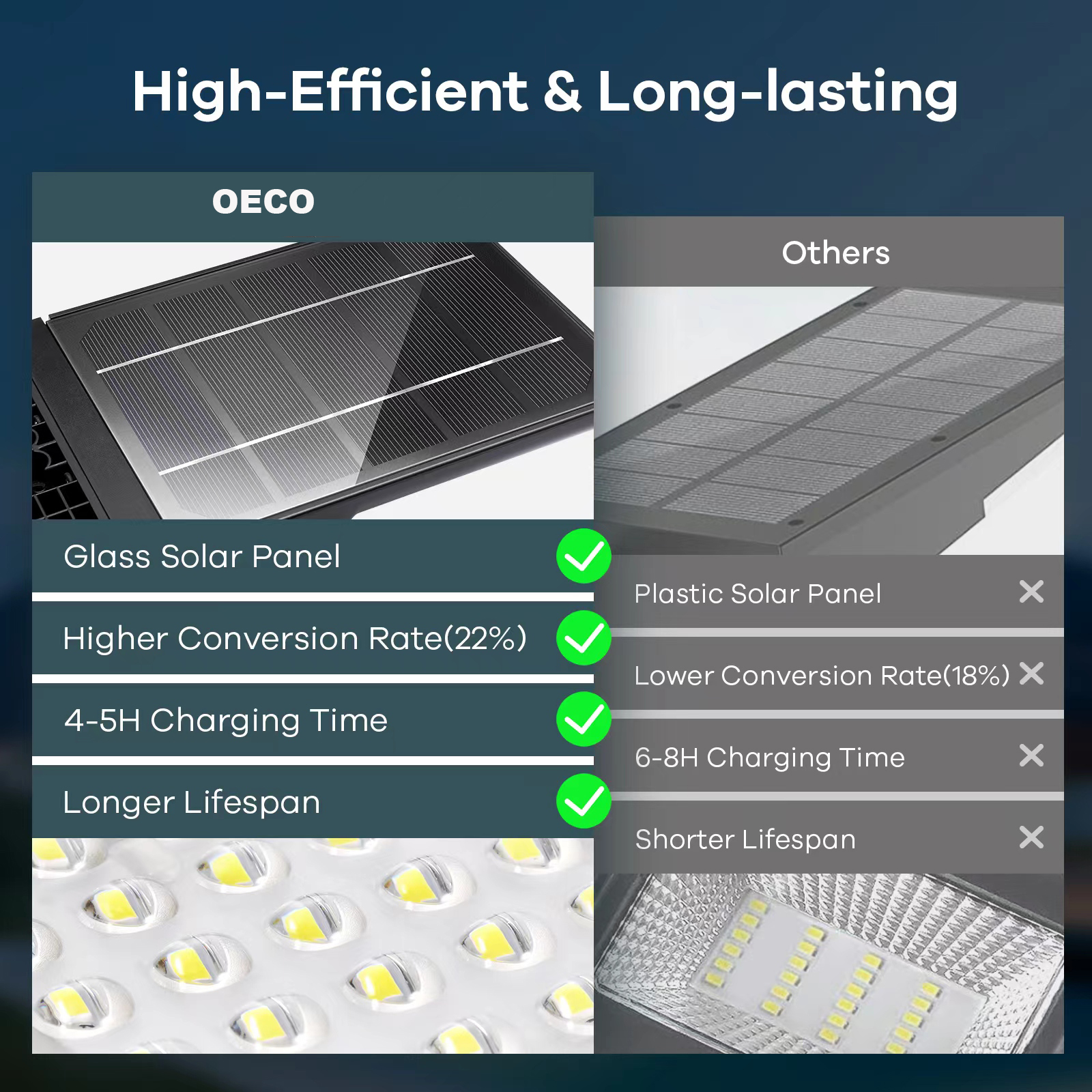 6, Use high quality mono-crystalline silicon solar panel with tempered glass laminated, 23% photoelectric conversion rate.