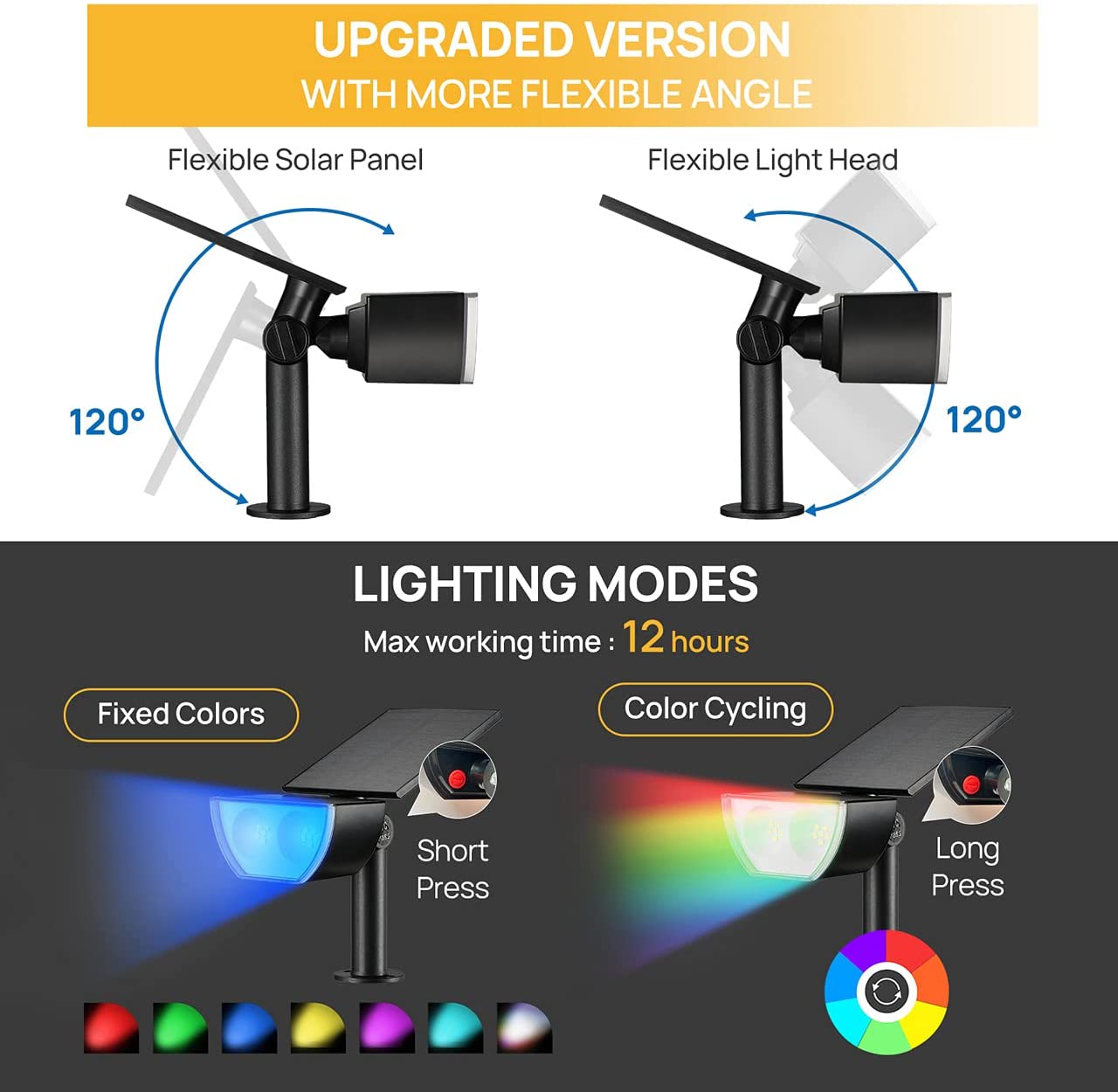 3, The lamp body and solar panel are separated, free to tilt the lamp & the solar panel 120° up and down separately.
