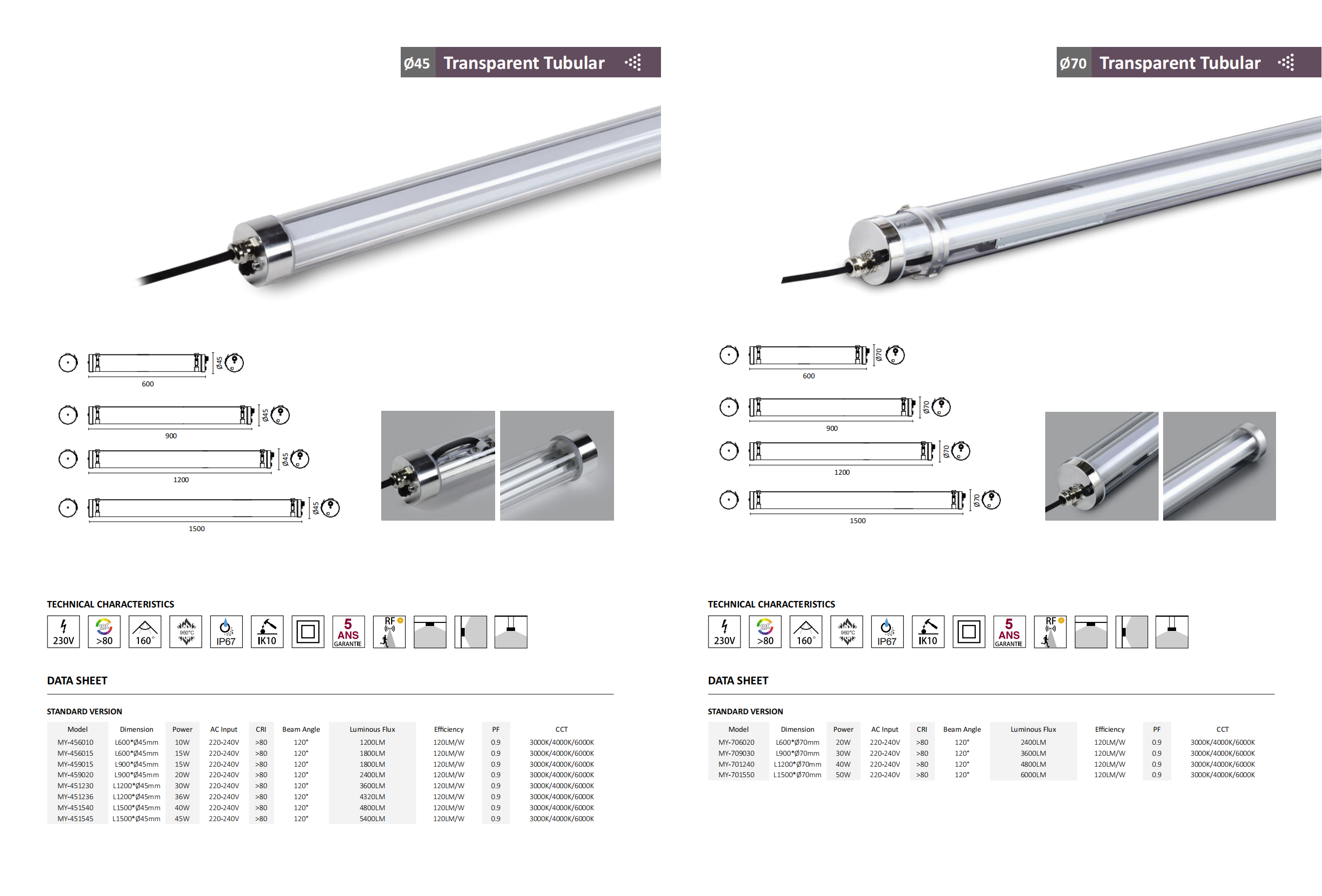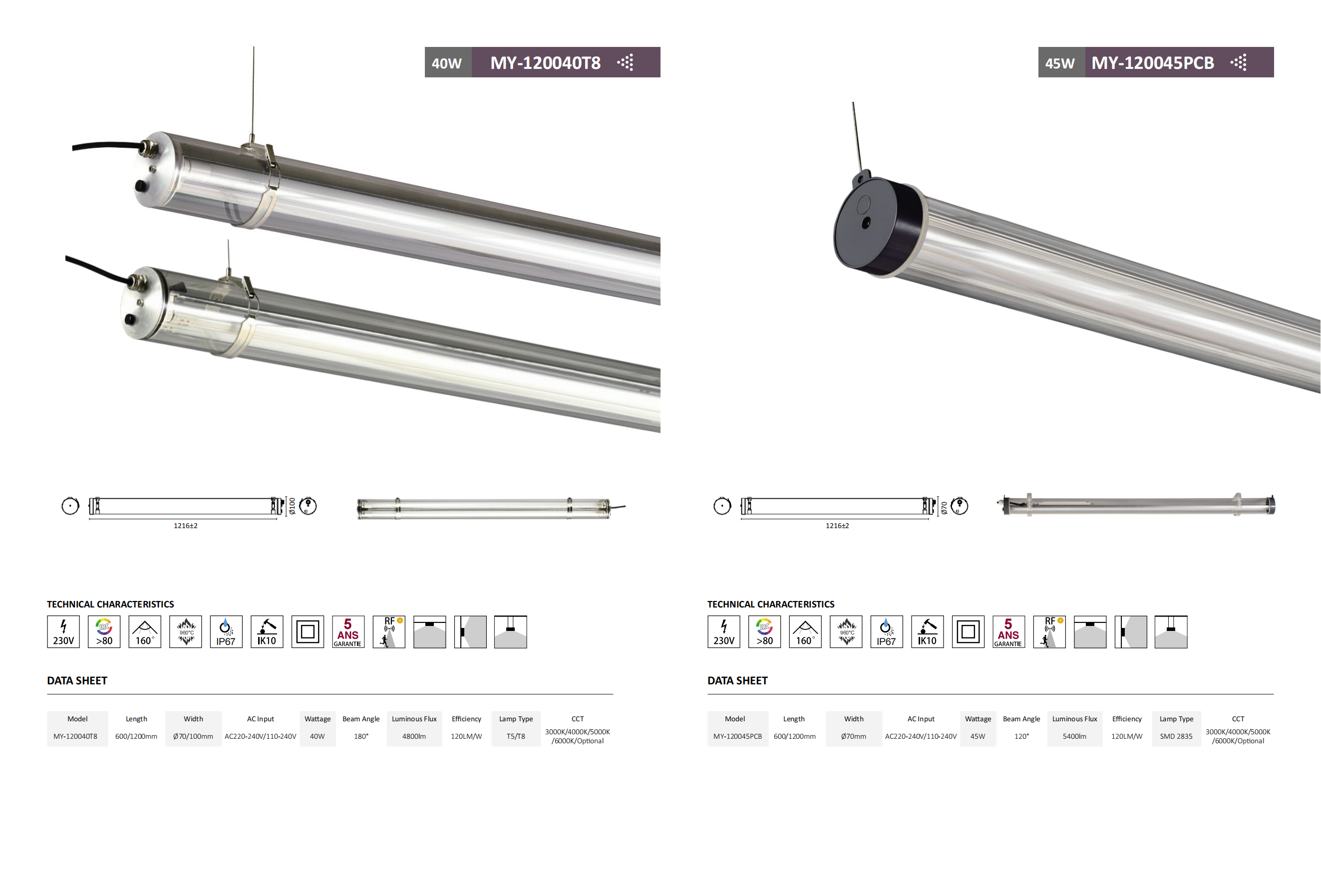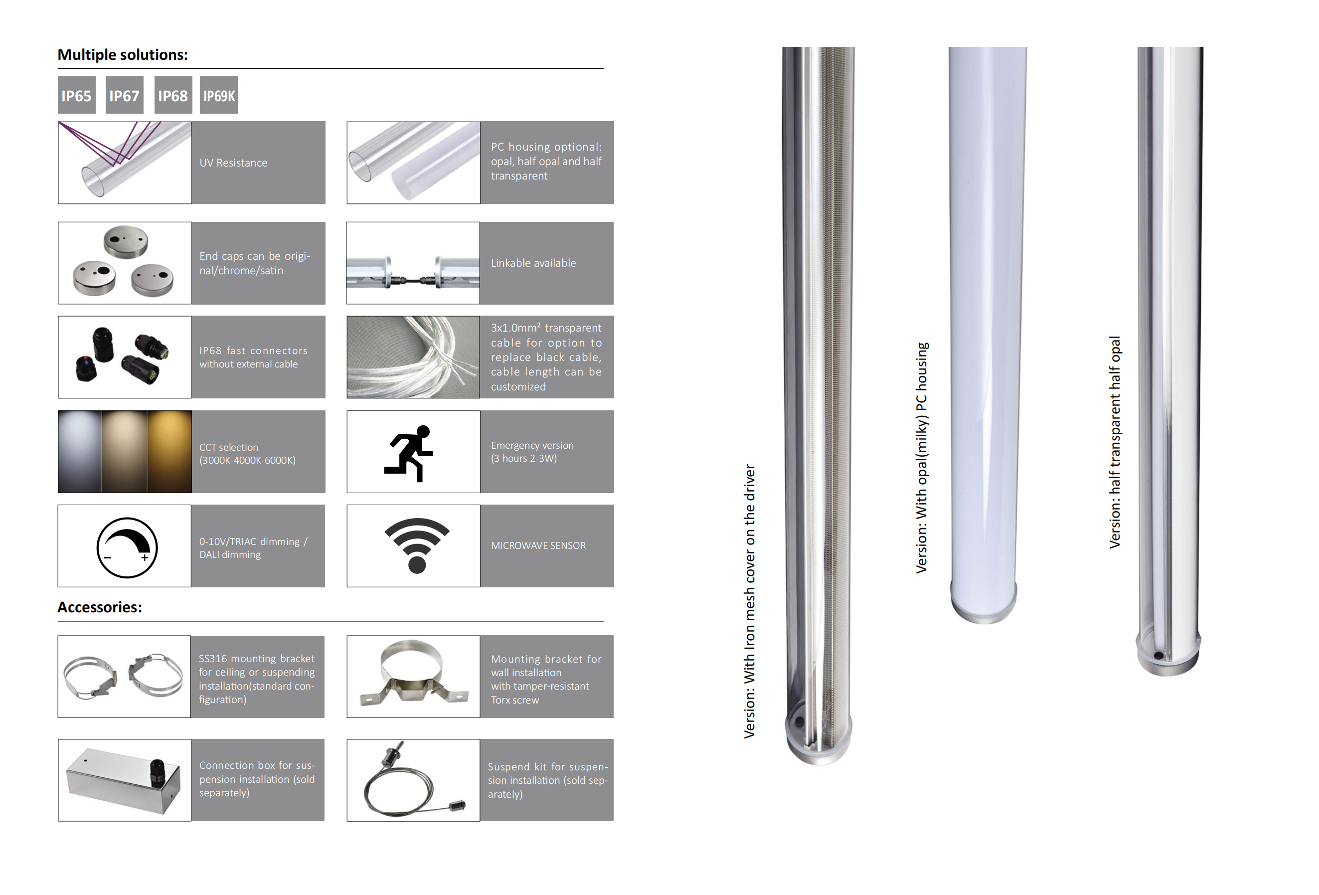 Waterproof 120/160/360 degrees tube light,