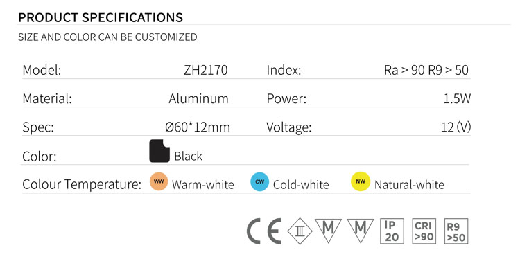 Light color | warm white/natural white/cold white |