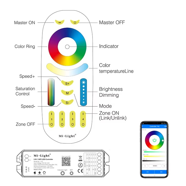 2.4G Remote Control / WiFi + Bluetooth / Zigbee / DALI DT8 …