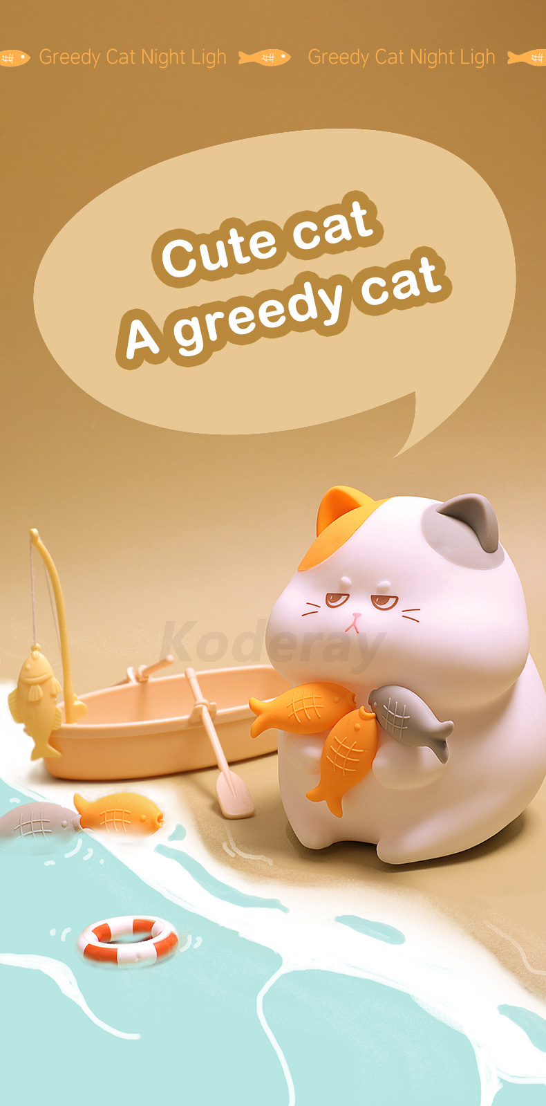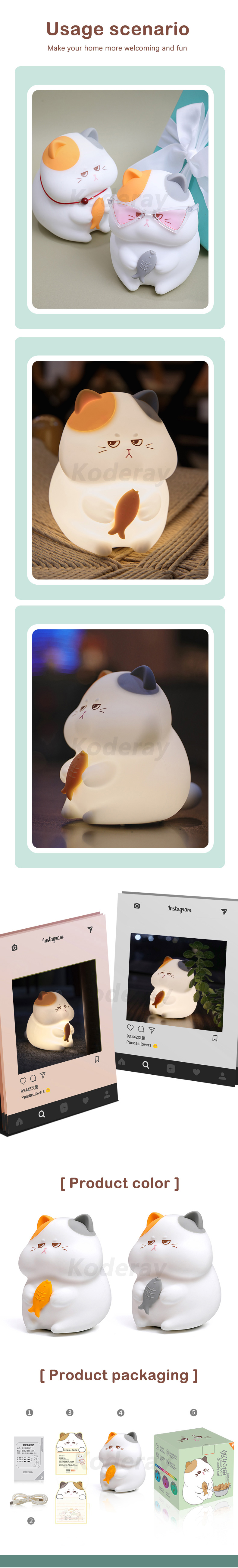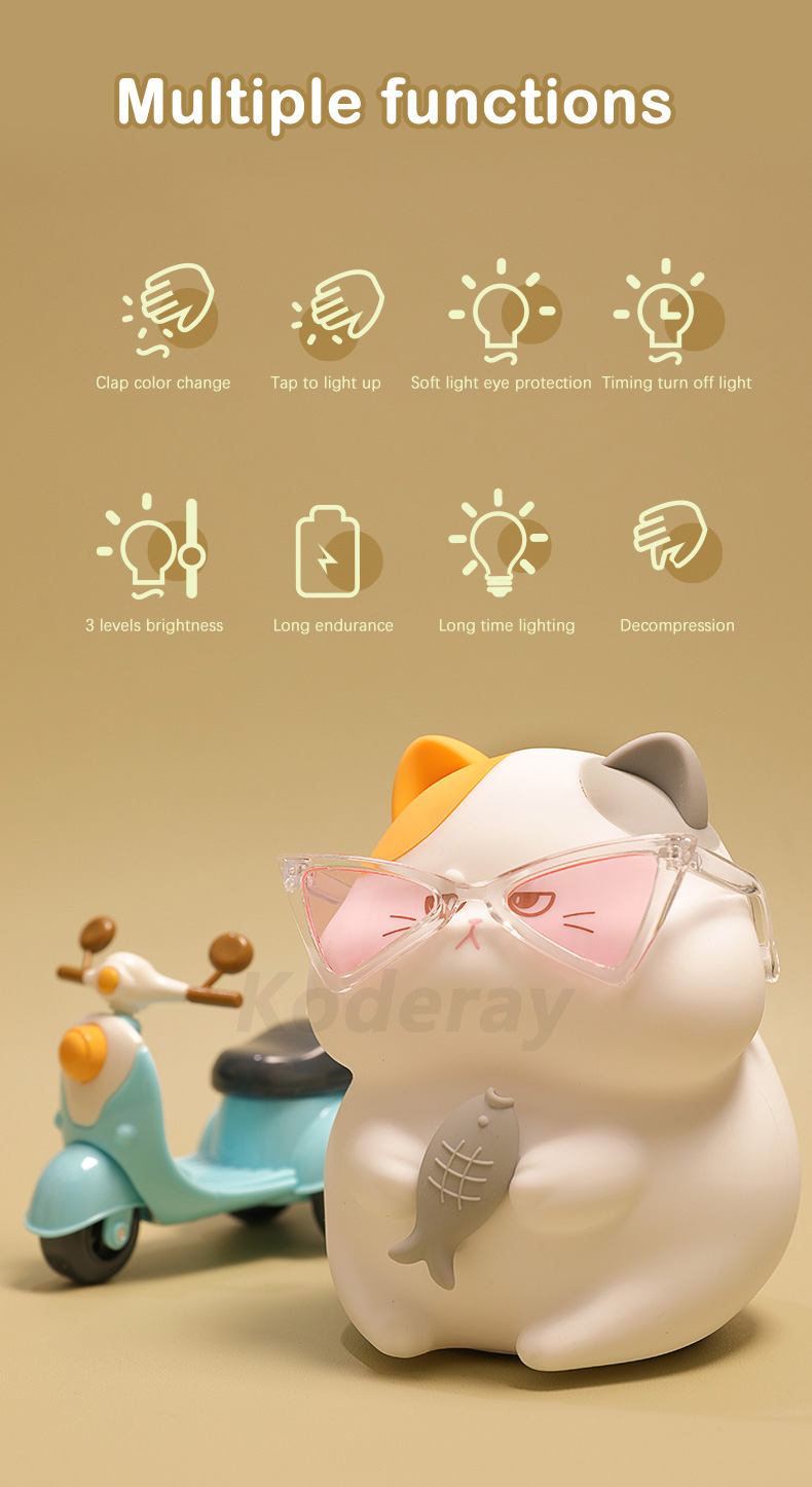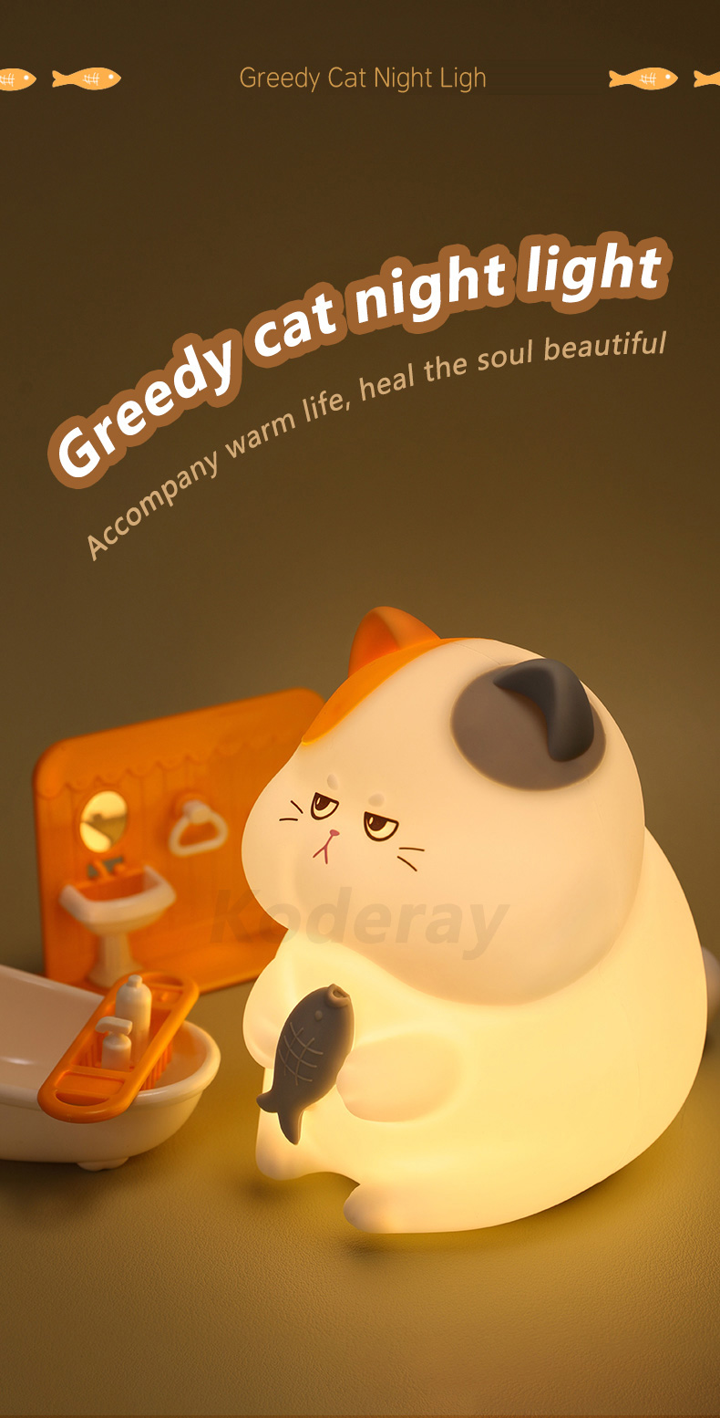 Greedy cat night light silicone night lamp for kids children baby mini toy cute gift | Lights