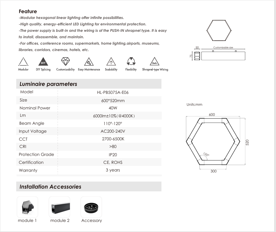 Smart Puzzle Series HL-PB5075A-E06 Hexagon Linear Pendant Light | Lights | Chandeliers & Pendant Lights