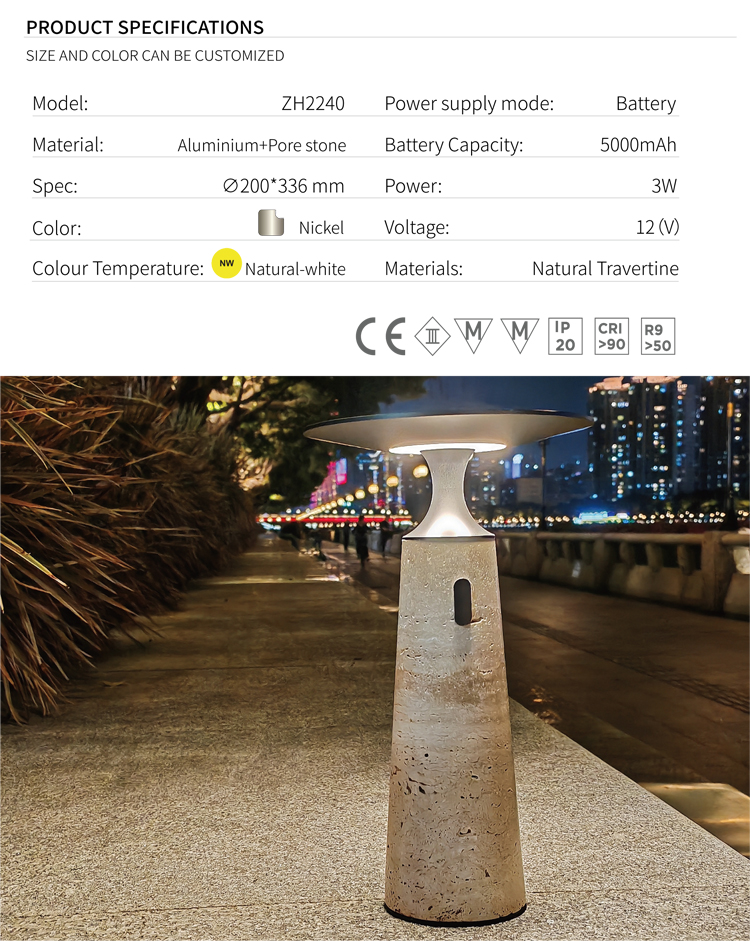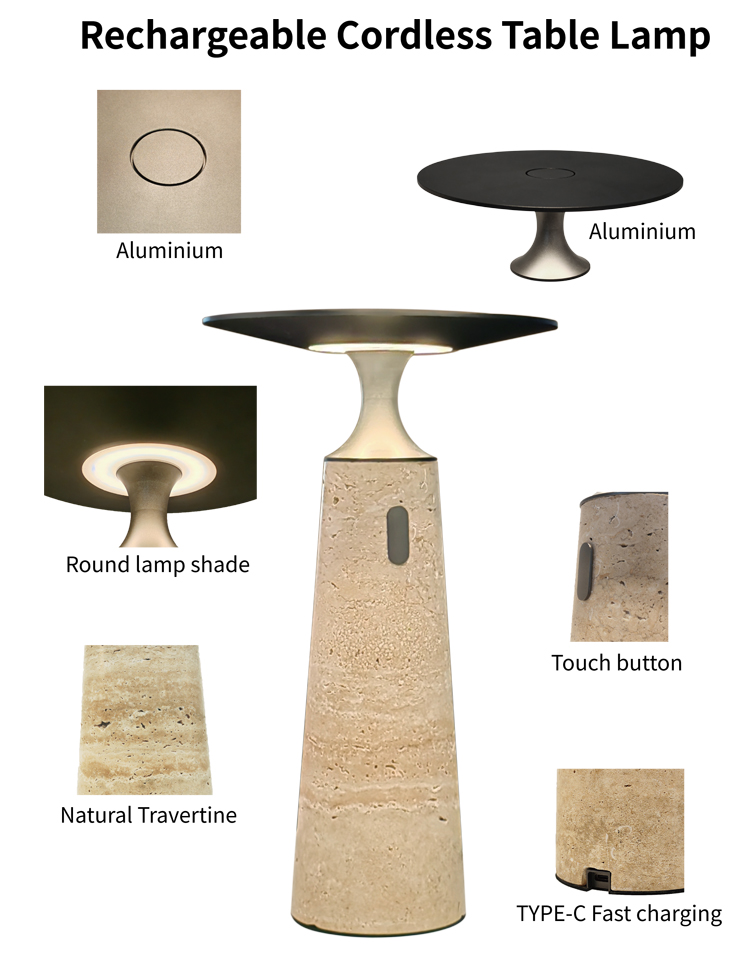 High end Natural Travertine Table Lamp