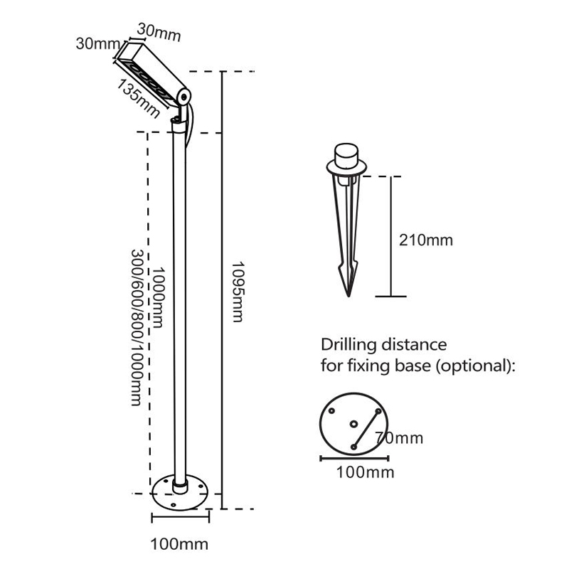 L30*W30*H135mm, Pole height=300/600/800/1000mm