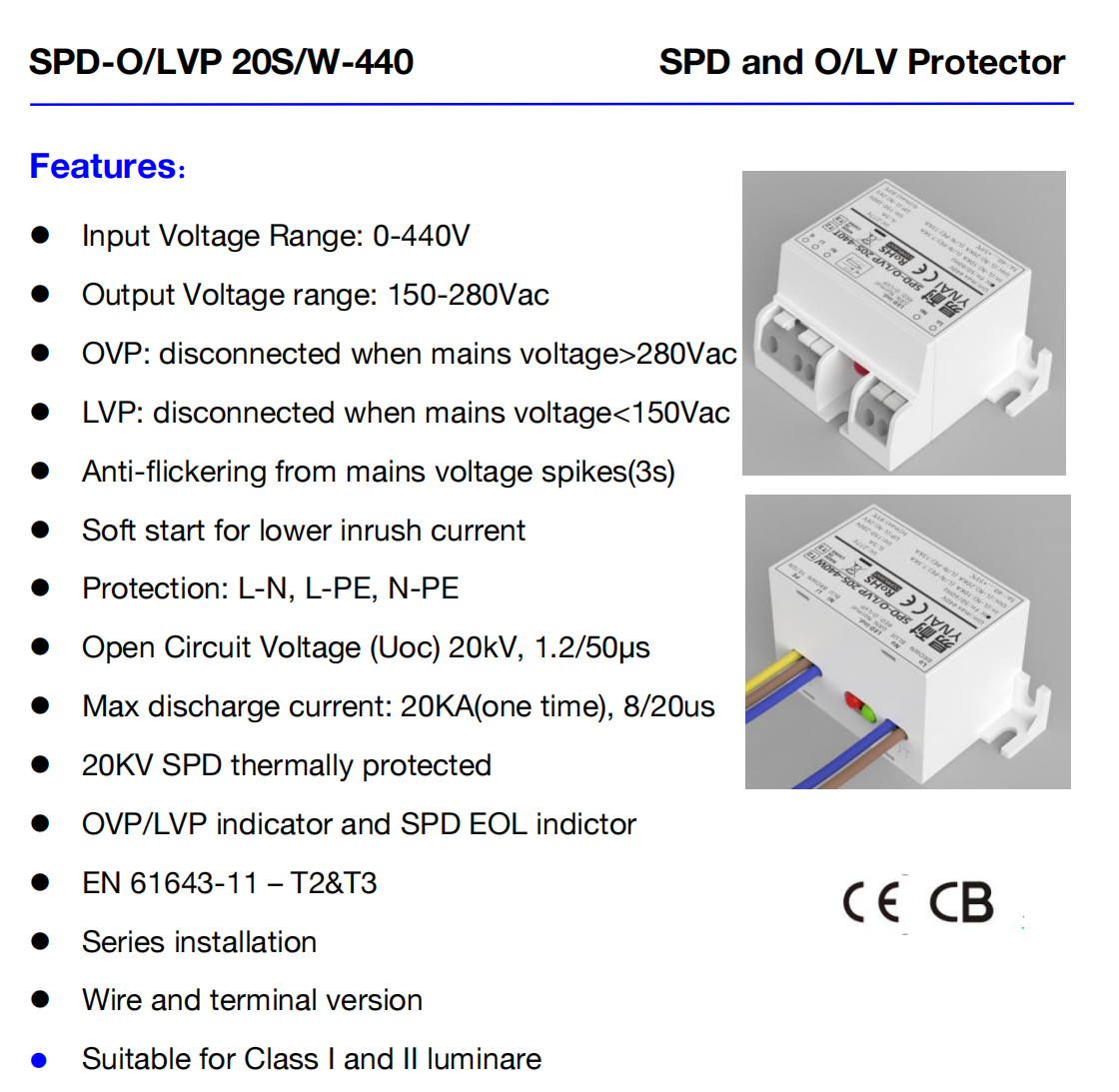SPD+ OVP LVP Driver Protector for LED Lights for Lightning Protection Solar System Electronic Equipment Industrial T2 T3