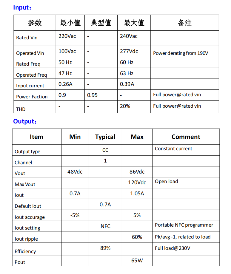CP65W dim 0.7-1.05A 48-86V WV product spec 20231027