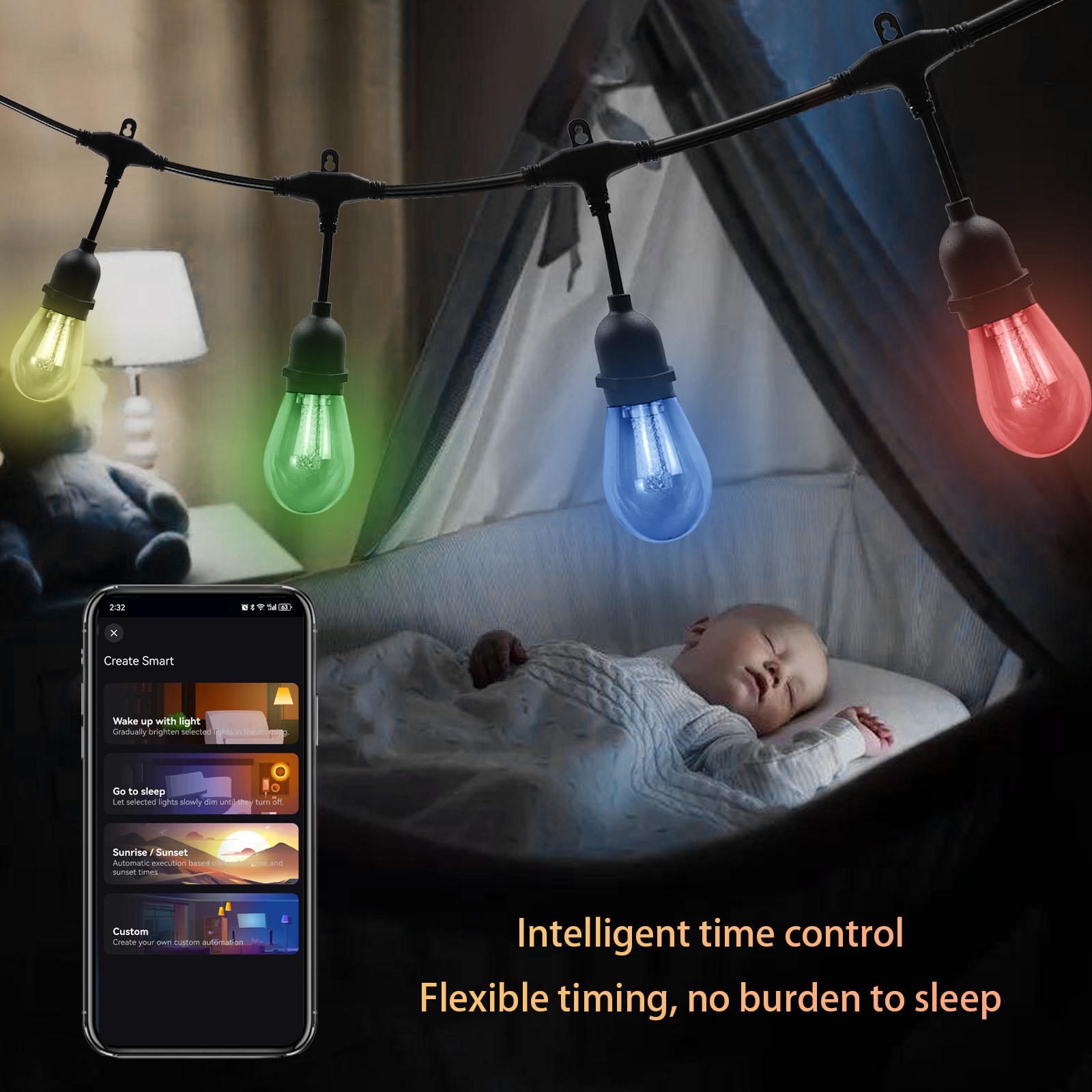 HRSTY Wifi Control Hanging LED Patio Lights RGBW DC24V IP65 Outdoor String Pixel Light with Astigmatic Lamp Post Bulb