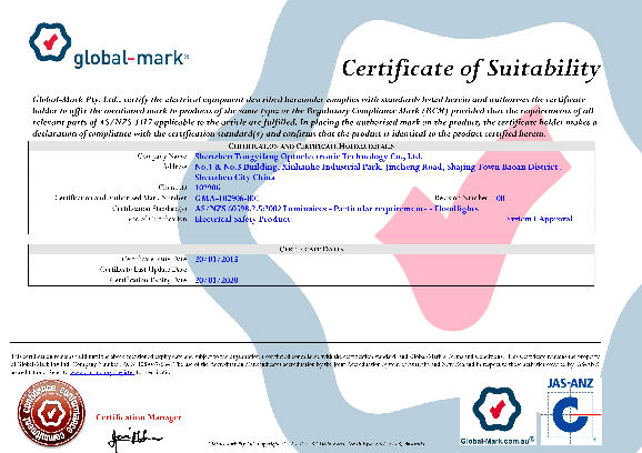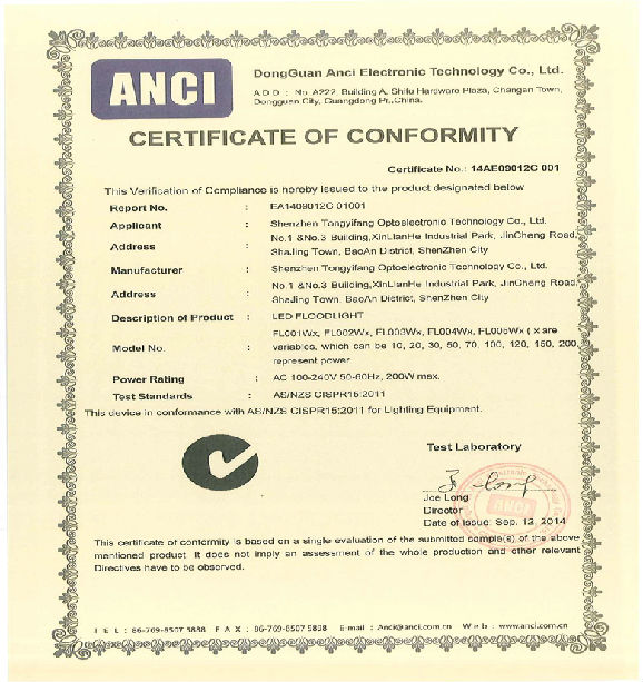 SAA Certificate of TYF LED Flood Light