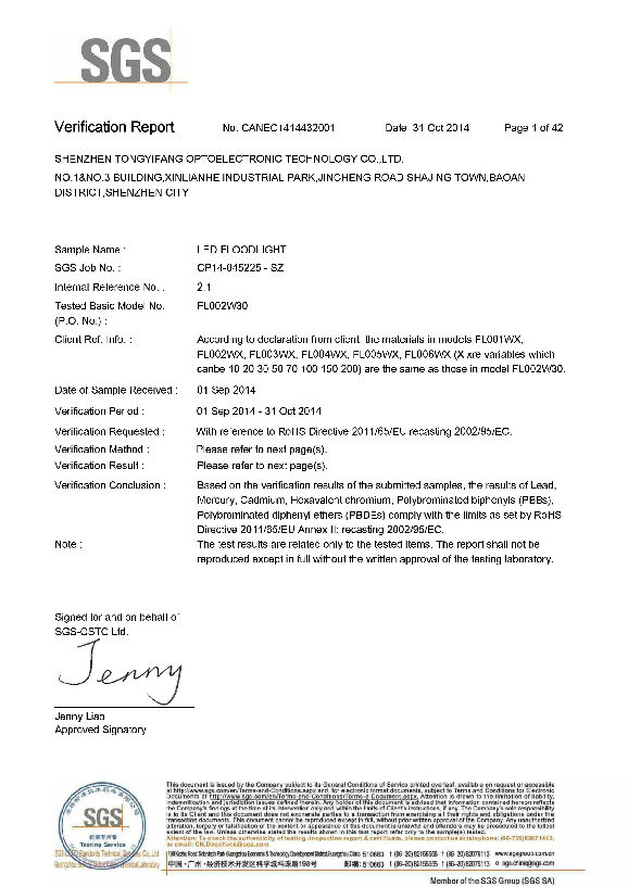 SGS Certificate of TYF LED Flood Light FL002