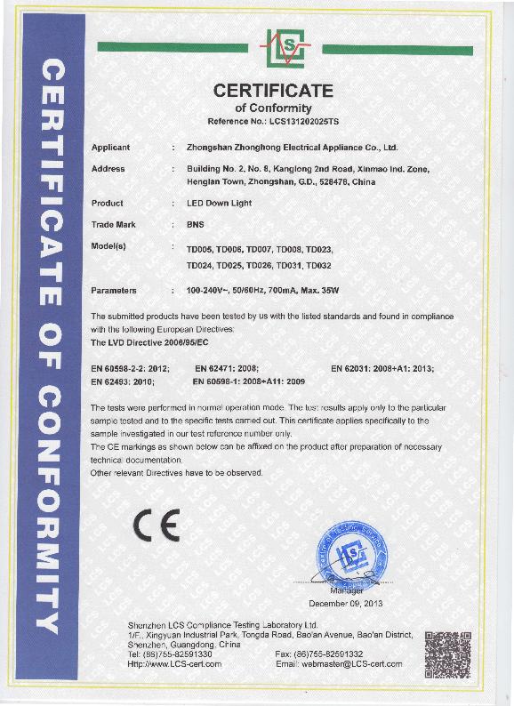 Zhongshan Zhonghong Electrical Appliance Company Ltd.