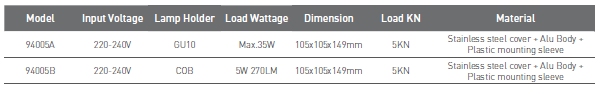 Stainless steel cover + Alu Body + Plastic mounting sleeve