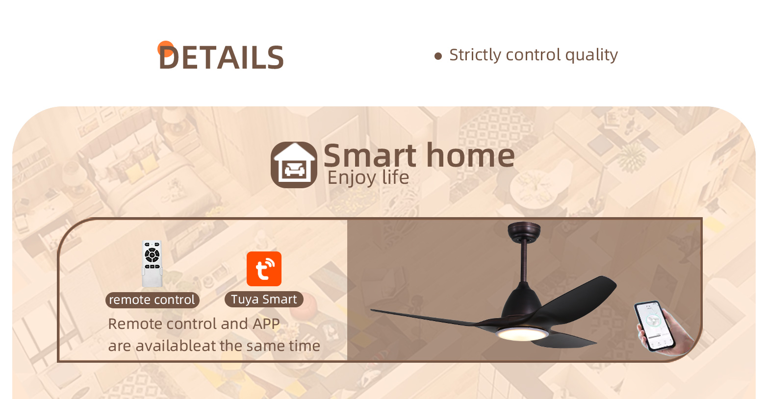 Smart Control Included Remote control & Wall control , Phone app tuya wifi control