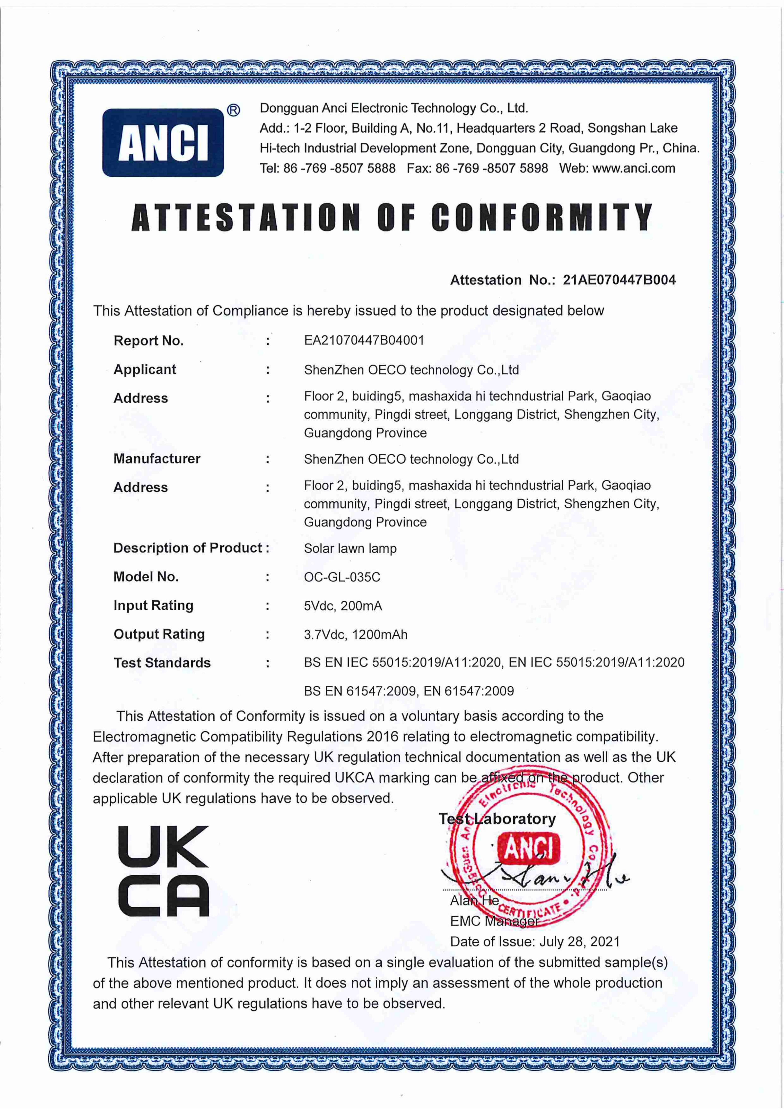 发行机构Dongguan Anci Electronic Technology Co.,Ltd证书类型OTHERS有效日期2021年7月27日 - (不適用)