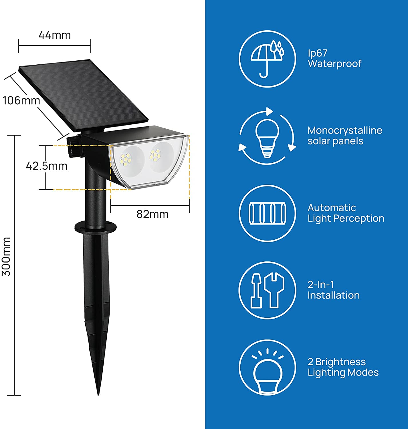 2, Elegant & smart design, support 2 installation methods, ground inserted & wall mounted.