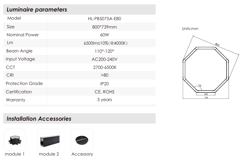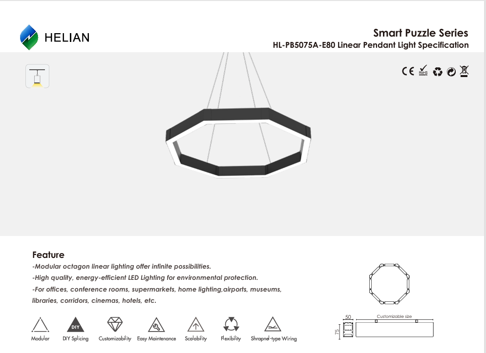 Smart Puzzle Series HL-PB5075A-E80 Octagon Linear Pendant Light